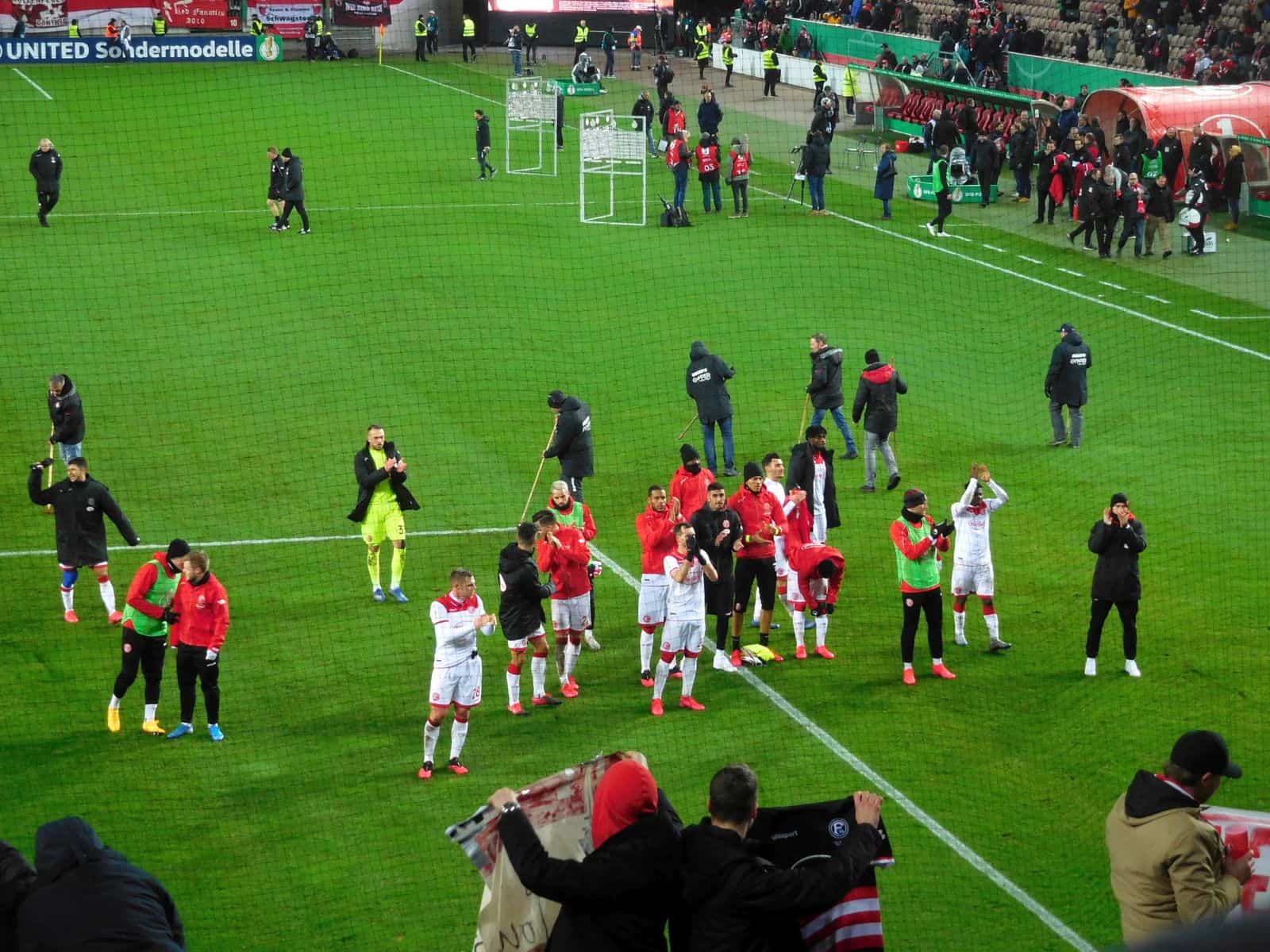 Bleibt nur zu erwähnen: Berlin, Berlin, wir fahren nach Berlin! Dazu braucht es noch zwei Siege, und der Wunschgegner im Viertelfinale wäre der Sieger der Begegnung Karlsruhe vs Saarbrücken, wobei es am schönsten wäre, gegen die saarländischen Freunde antreten zu müssen. Wahlweise einen der richtigen Vereine zuhause…