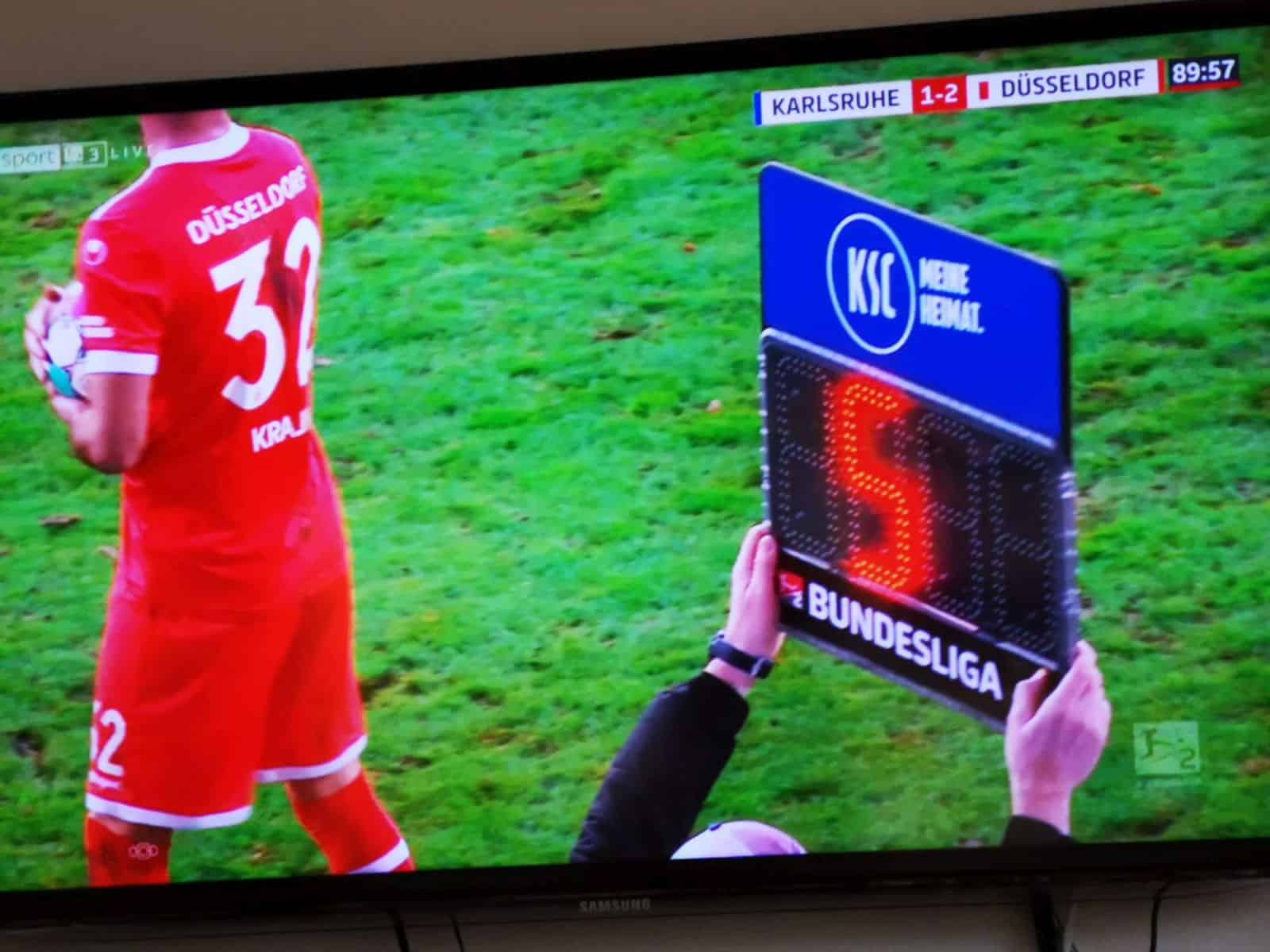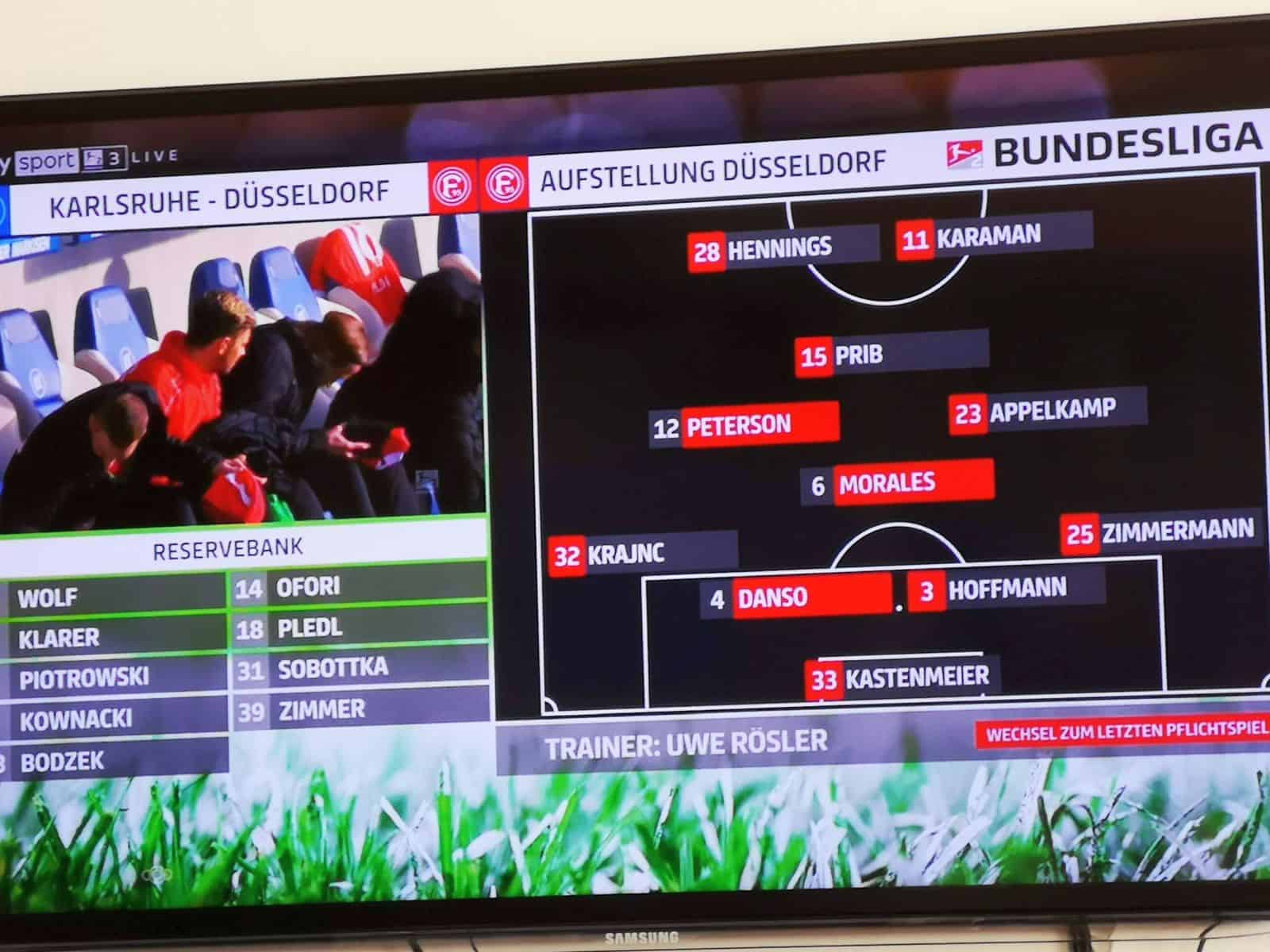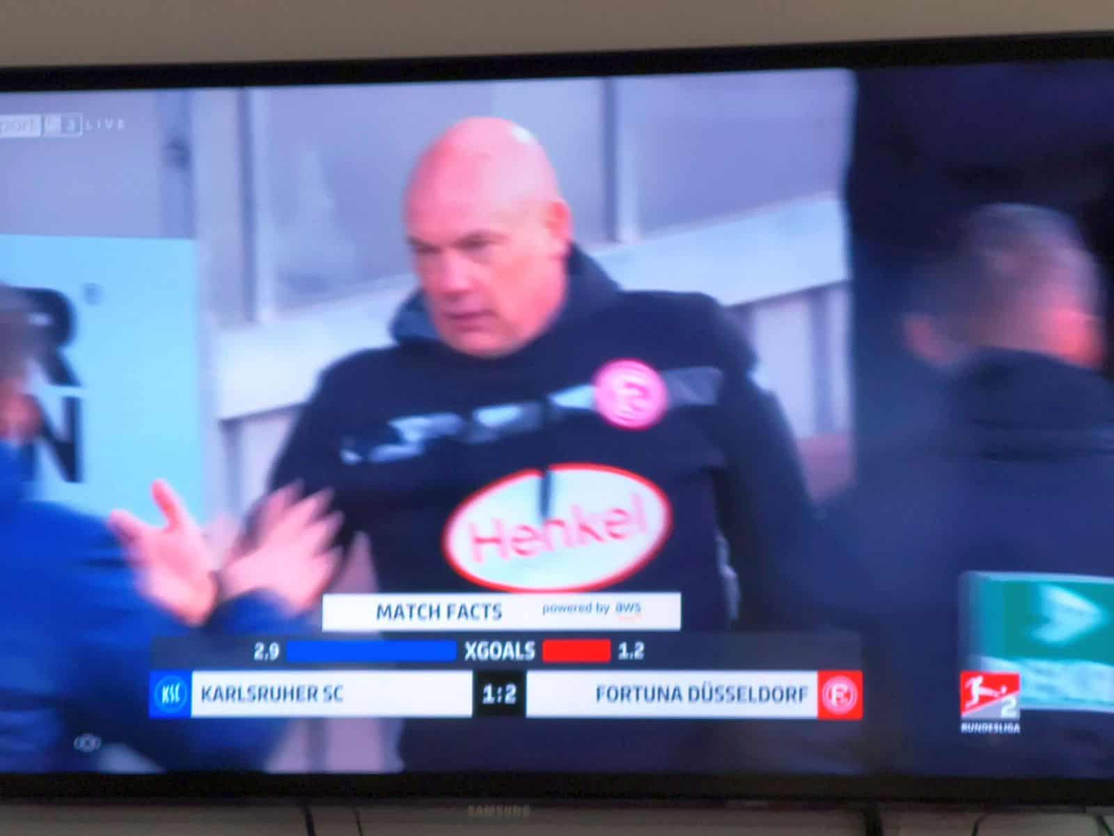 Im Vergleich dazu lieferte Rouwen Hennings auch ohne Torerfolg sein bisher bestes Saisonspiel, obwohl er wieder das spielte, was er immer spielt. Ganz offensichtlich wird der Rouwen umso wirkungsvoller, je effizienter das Offensivspiel insgesamt läuft. Zugegeben: Immer noch kamen viel zu wenig Pässe und Flanke, die für ihn verwertbar wären. Aber es riecht nach Hennings 2.0 in den nächsten Wochen. Dawid kam dann in der 80. für den ausgelaugten Eddie, und Cello erlöste uns von Kenan. Um ein Haar hätte Kownacki uns indirekt das 1:3 geschenkt, denn er legte in der 89. Minute während eines schicken Konters die Pille rüber auf Pledl, der aber – genau! – das Eins-zu-Eins gegen den KSC-Keeper verlor. Und so ging das Zittern durch fünf Minuten Nachspielzeit weiter. 5 (in Worten: Fünf) Minuten? Äh, weshalb genau? Die Videobeschisssache kostete handgestoppte zwei Minuten (inkl. Elfer), größere Verletzungspausen gab es nicht, also wären drei, maximal vier Minuten Zuschlag angemessen gewesen. Um Fußballgottes Willen, nein, hier soll keine Verschwörungstheorie à la „Alle gegen die Fortuna“ gestrickt werden, aber wie es in dieser Saison läuft, das kann einen schon nachdenklich machen.