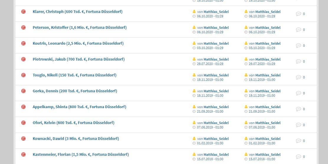 Im Klartext: Irgendwelche Foristen können vorschlagen, was Spieler X momentan wert ist. Das wird dann diskutiert, und am Ende setzen die transfermarkt-Vorturner den Wert fest. Diese Methode stammt noch aus den Zeiten als die Plattform vor allem ein Diskussionsforum war, in dem begeisterte und kenntnisreiche Fußballfans ihre Beobachtungen von Spielern einbrachten. Wäre es aber immer noch so bzw. so wie der Schweizer transfermarkt-Chef behauptet, müssten sich ja im Forum „Marktwertanalyse“ bei der Berechnung der Marktwerte von Fortuna-Spielern die Experten tummeln.