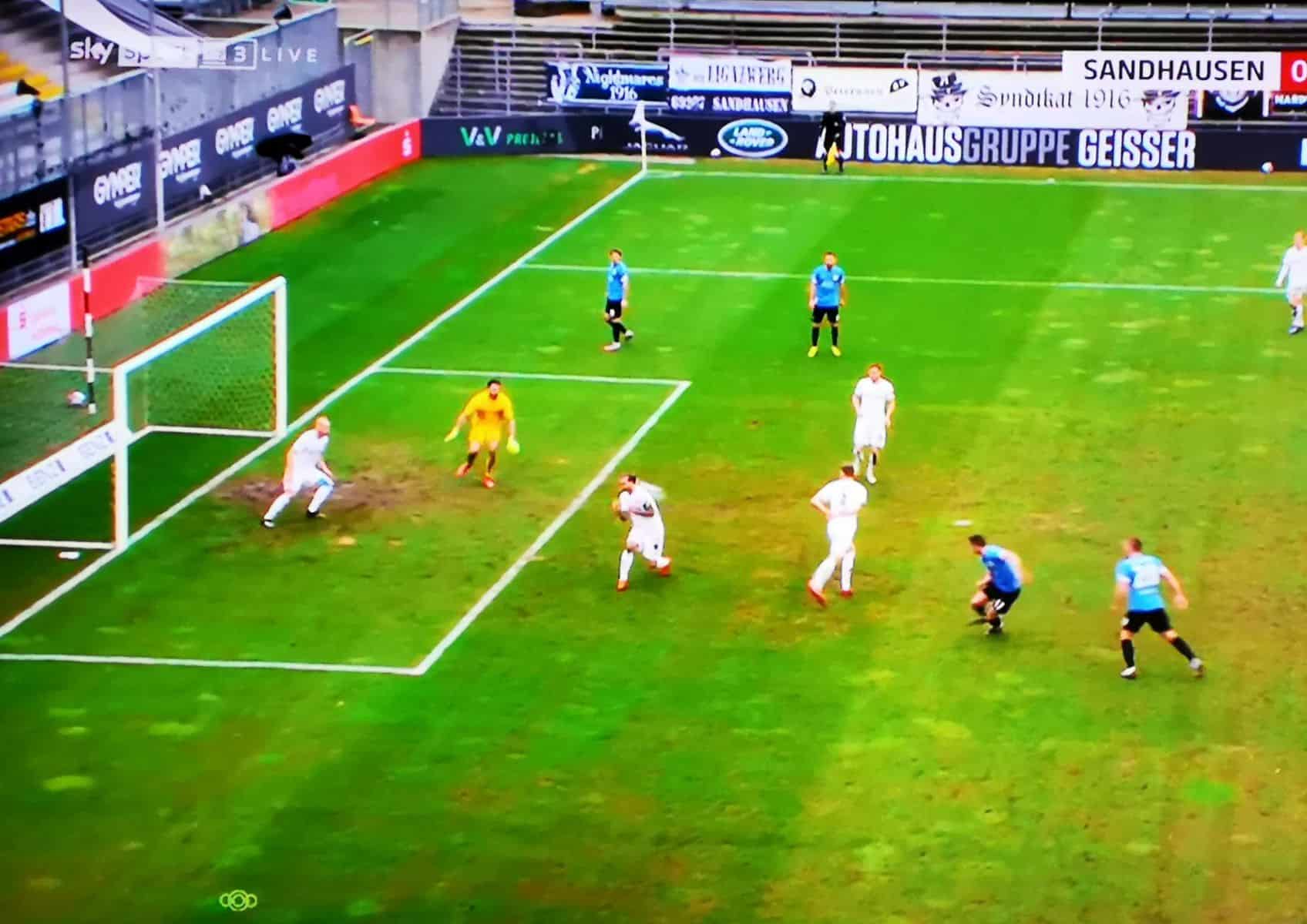 SVS vs F95: Und wieder mal ein Torschuss geblockt (Sky-Screenshot)