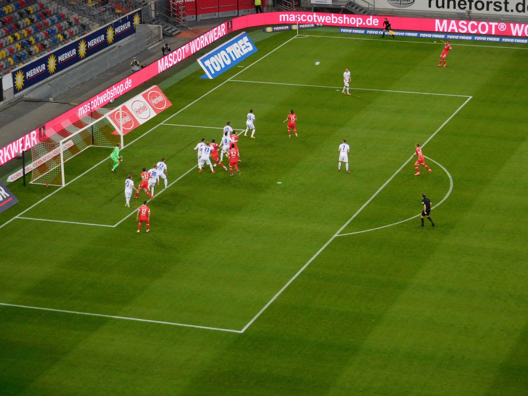 Das war mehr als ein gewonnenes Spiel, das war der Schlüsselmoment einer ganzen, eher unrunden Saison, alles, was jetzt noch kommt, ist Zugabe. Diese Zugabe könnte im idealsten aller denkbaren Fälle in zwei Relegationsspielen gegen den hässlichen Äff-Zäh oder die nichtswürdige Hertha münden. Man stelle sich das mal vor. Ihr Ergebener oben auf der Pressetribüne ist durch, zittert und wiederholt sich: Ja! Ja! Ja! Kann sich nicht lösen bis er sich erinnert: Nein, es wird keine Ehrenrunde geben, keine Humba, keine Fangesänge bis eine halbe Stunde nach Abpfiff. Man stelle sich eine volle Hütte vor, man stelle sich vor, dieses Spiel hätte unter normalen Umständen stattgefunden. Man stelle sich vor, die Seuche wäre vorbei.