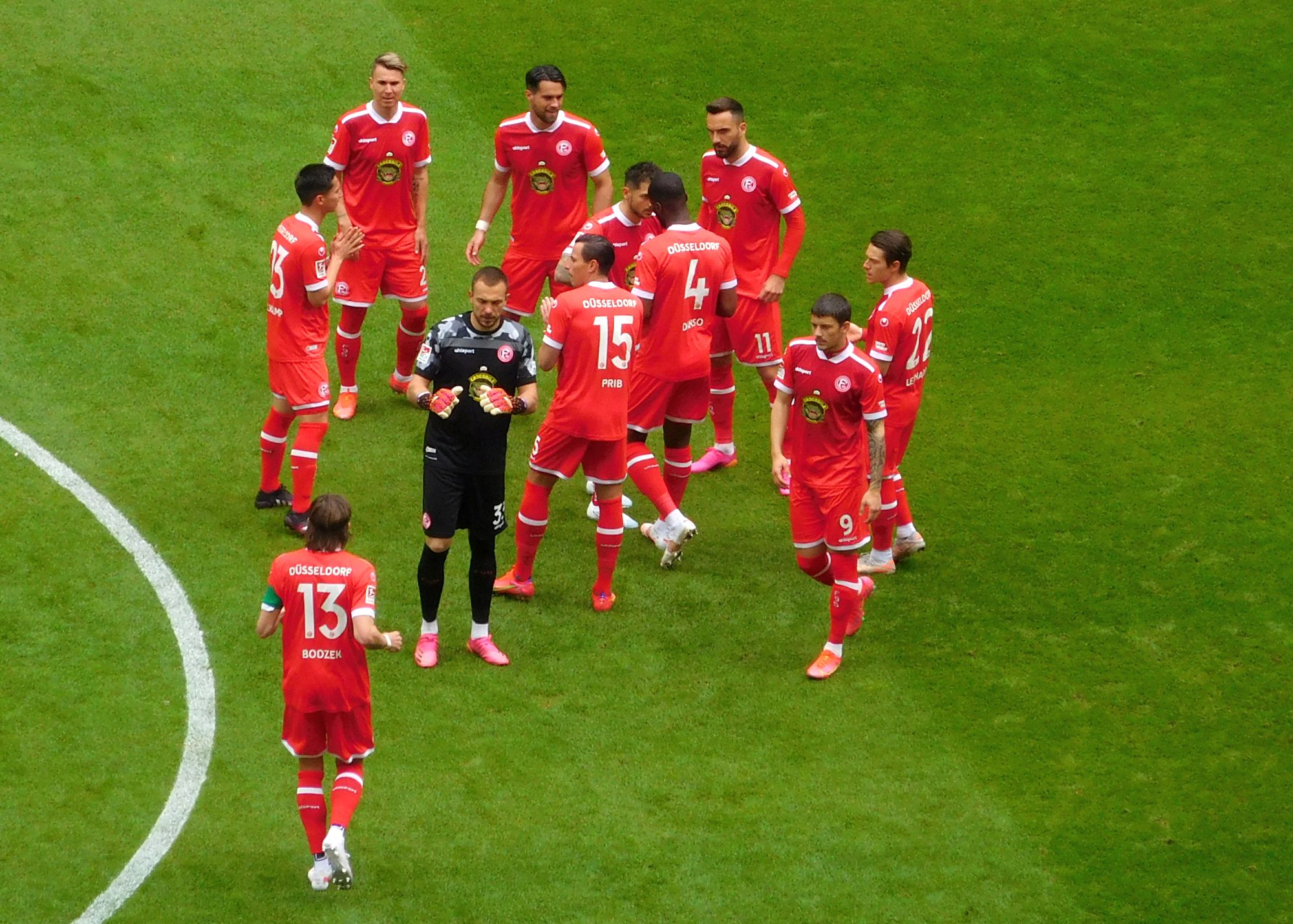 Um der Gerechtigkeit die Ehre zu geben: Am Ausgleich in der 51. Minute hatten die beiden erwähnten Herren keinen Anteil. Bisschen Pech für Flo war auch dabei, denn das Ei, das dann in die Maschen ging, war ein wenig abgefälscht. Konnte er nichts dran halten. Dass Leonardo mit dem Tor was zu tun hatte, wurde erwähnt; tatsächlich wirkte Herr Koutris in der Folge fast durchgehend unkonzentriert – wie schon bei seinen letzten Auftritten phasenweise. Vielleicht sollten die Coaches dann doch mal Plan B aufrufen, also Klarer als zweiten IV bringen, damit Krajnc auf die linke AV-Position rücken kann. Ob der Ausgleich ein Weckruf war? Mmmh, joah… Immerhin ging Danso jetzt regelmäßig vor, wenn es einen Einwurf von rechts für die wunderhübsche Fortuna gab, und machte den Katemann. Blieb brotlos…