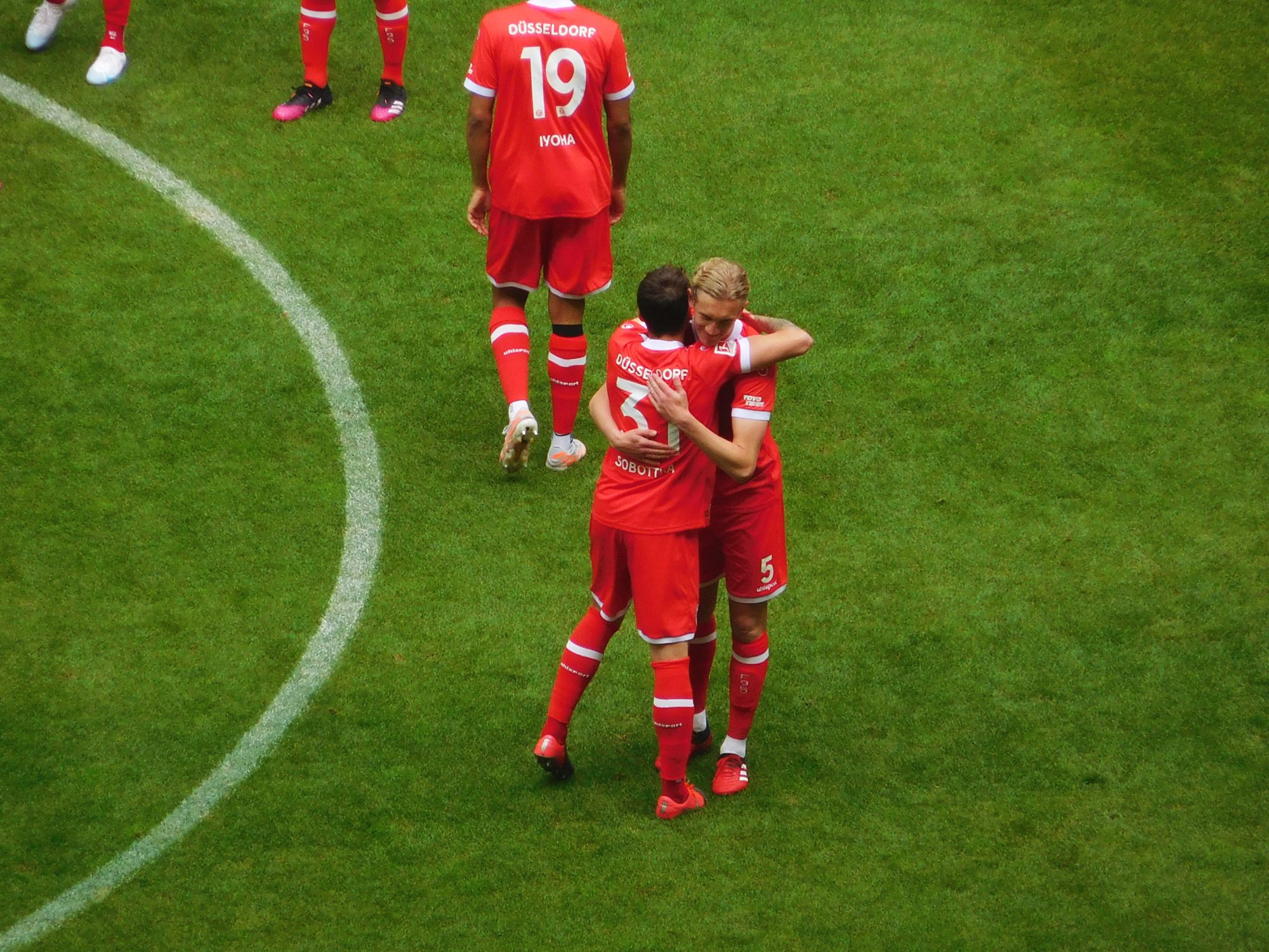 Dass es um die 70. Minute herum nur 2:0 stand, war beschämend für die Fortuna. Immerhin hatte sich das Coaching-Team nach ziemlich langer Beratung dazu entschlossen, die beiden schwächsten Akteure in Rot vom Platz zu nehmen: Für Koutris und Iyoha kamen positionsgetreu Luka Krajnc und Brandon Borrello. Mister BB legte los wie die Feuerwehr und hätte beinahe gleich eine Vorlage gegeben, die aber dann doch noch geblockt wurde. Dann aber: Borrello flach auf Krajnc – der Winkel war zu spitz. In der 79. Minute zeigt Karaman endlich mal, was er theoretisch kann; seinen feinen Schuss kann der erzgebirgige Tormann gerade noch halten. Das war’s dann auch für den designierten EM-Teilnehmer, der Platz machen muss für Rouwen Hennings.