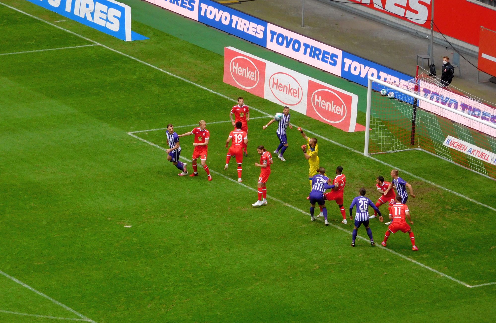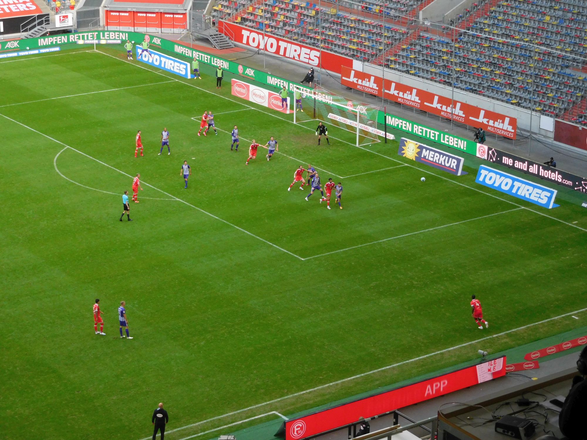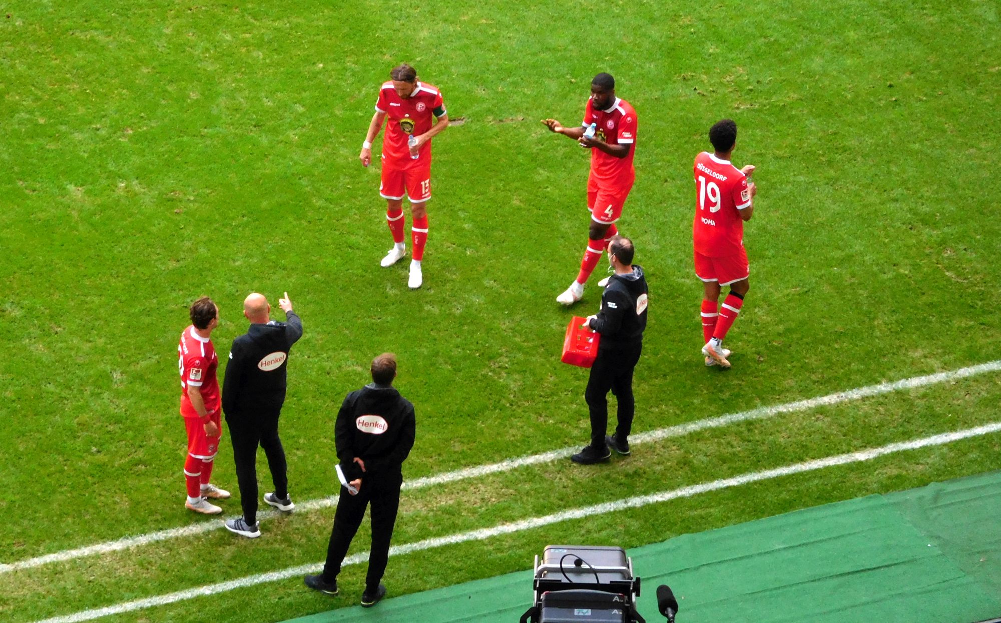 Über alles gerechnet hat dieser spezielle Coaching-Stil weder einzelne Spieler noch die Mannschaft auch nur einen Deut besser gemacht. Hat denn das Treiben von Uwe Rösler und den Co-Trainern Tom Kleine und Axel Bellinghausen überhaupt etwas verbessert? Und, wenn ja, im Vergleich zu was? Interessant war heute das Bemühen, mehr Flexibilität ins Spiel zu bringen. So kam der Axel zehn Minuten vor der Pause hoch und ließ sich von unseren Videoanalysten Szenen vorspielen. Dann flitzte er wieder runter und besprach das Gesehene mit Rösler. Kurz sah es aus, als würde gerade die Mittelfeldtstatik geändert, aber dann war auch schon Halbzeit.