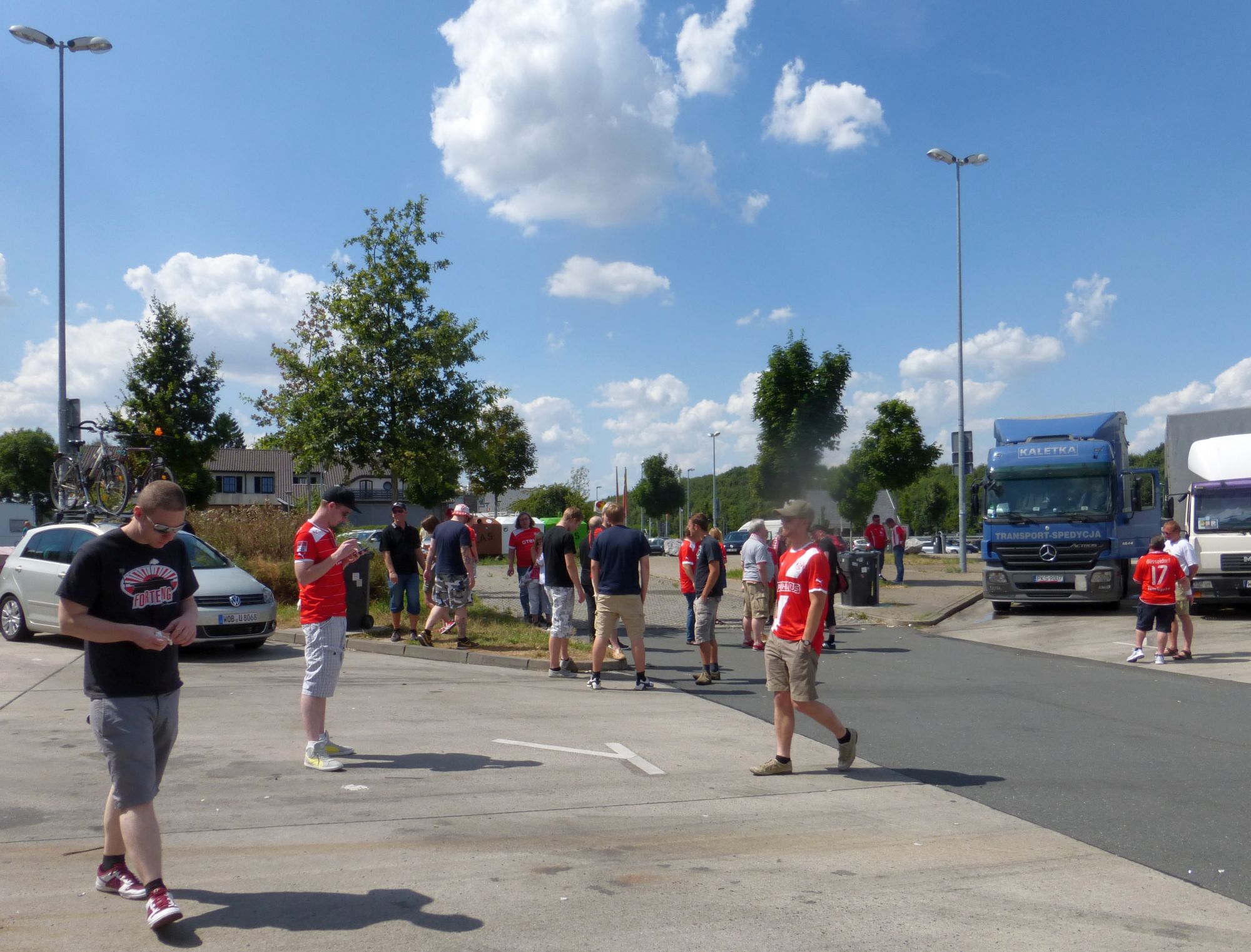 Je öfter du auswärts fährst, desto besser lernst du die anderen Fortuna-Anhänger kennen. Da fragst du nicht mehr „Na, dein Tipp?“ sondern „Und, hat deine Tochter die Prüfung geschafft?“ oder auch mal „Brauchst du noch Hilfe beim Umbau?“ Da sitzt du in einer wildfremden Stadt in einem dir zuvor völlig unbekannten Biergarten mitten zwischen Leuten in Rot und Weiß und diskutierst über politische Fragen. Da landet man bei einem Verein mit bekannt gefährlichen Anhängern mit dem Fanbus auf dem speziellen Parkplatz, und alle passen aufeinander auf, damit man sicher ins Stadion kommt.