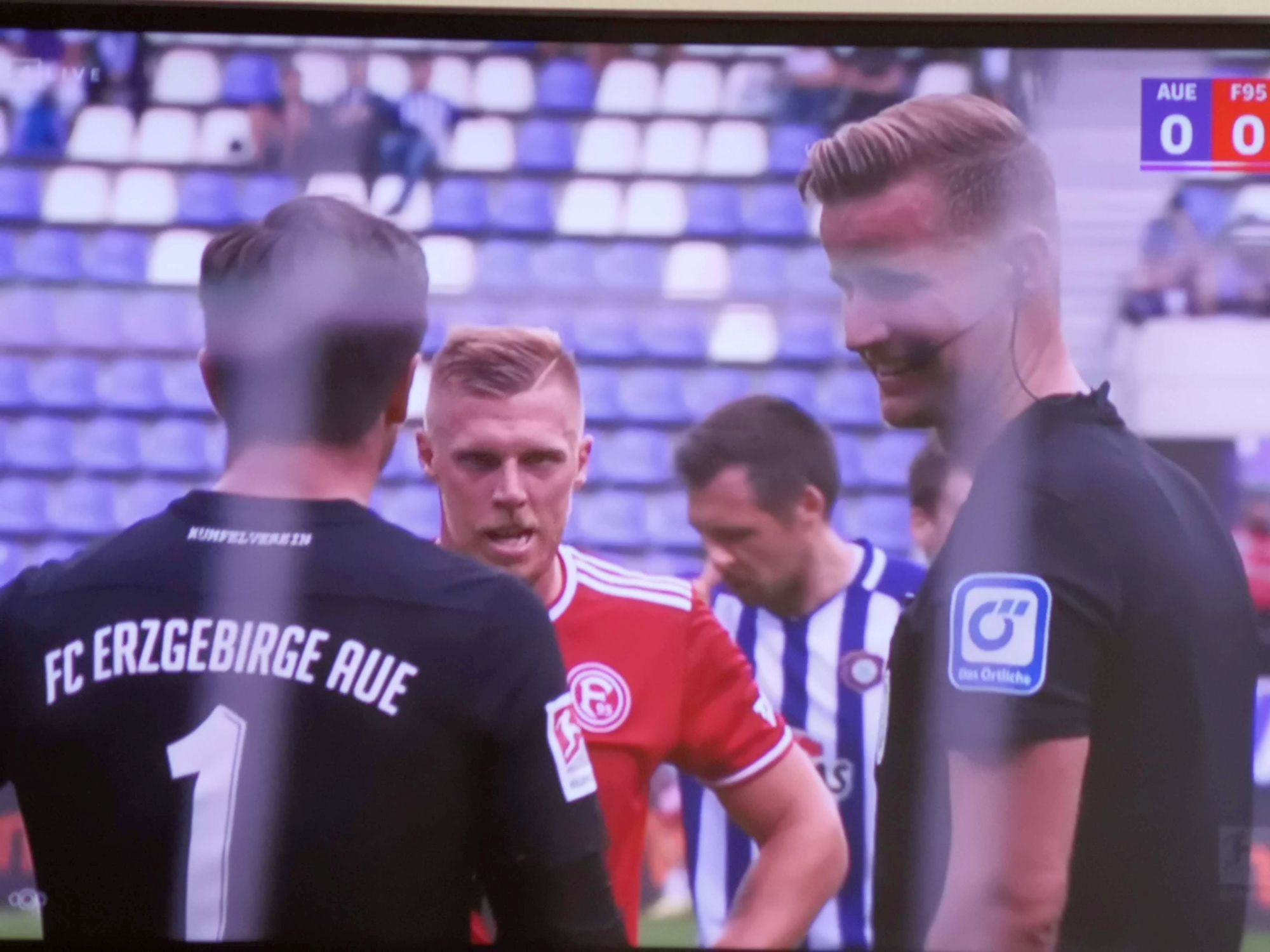 Es begann alles mit dieser Schrecksekunde ungefähr 16 Klicks nach dem Anpfiff. Die Fortunen zelebrierten vom Anstoß aus einen druckvollen Angriff, der rasch abgefangen wurde. Die Auer leiteten rasant weiter, und plötzlich läuft ein Veilchen mit dem Ball am Fuß frei auf unseren Kasten zu. Hätte Flo Kastenmeier in dieser Sekunde nicht alles richtig gemacht, was ein Tormann in einer solchen Situation richtig machen kann, hätte es in der F95-Hütte geklingelt. Wer weiß wie sich die Begegnung dann entwickelt hätte. Womit wir auch schon bei der allfälligen Schmierölpsychologie rund um unseren Stammkeeper wären. Der, so die These, sei auf einmal so gut, weil Raphael Wolf sich fit zeige, was einen Leistungsdruck auf ihn ausübe. Mit Verlaub, das ist bescheuert, denn der umgedrehte Schuh sagt, dass Flo so gedacht hat: Pöh, wenn der Raffa schlapp ist, kann mir keiner, muss ich mich nicht anstrengen. Jau, genau so ticken Fußballprofis. Nein, liebe Leute, nicht mal unbewusst.
