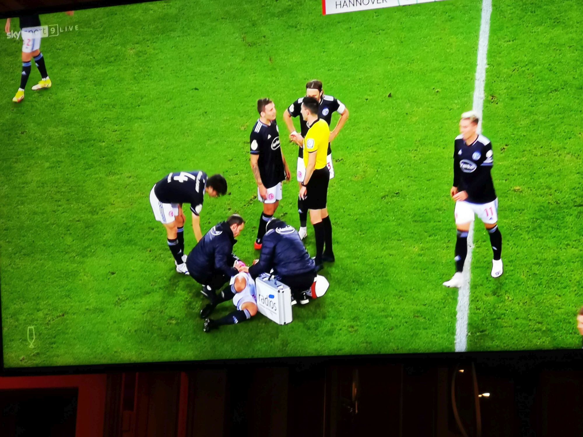 Weil es sich vor allem in (aus F95-Sicht) rechten Mittelfeld immer alles knubbelte, kam die Zimmermann-Narey-Maschine überhaupt nicht in Gang, also genau einer dieser Erfolgsfaktoren aus dem KSC-Spiel. Auf der anderen Seite sollte Flo Hartherz dieses Mal so mit Felix Klaus harmonieren wie mit Kris Peterson – ging gar nicht, obwohl Hartherz noch einer der Lichtblicke im Team war. Eine glatte 5, vielleicht sogar mit einem Minuszeichen versehen, eroberte sich Ao Tanaka als Achter, der gar nichts auf die Reihe bekam und als Spielmacher ein Totalausfall war. Das merkten auch unsere Trainer, die nach der Pause an dessen Stelle Kuba Piotrowski stellten, der wenigstens versuchte, die Kollegen als Kampfschwein mitzureißen.
