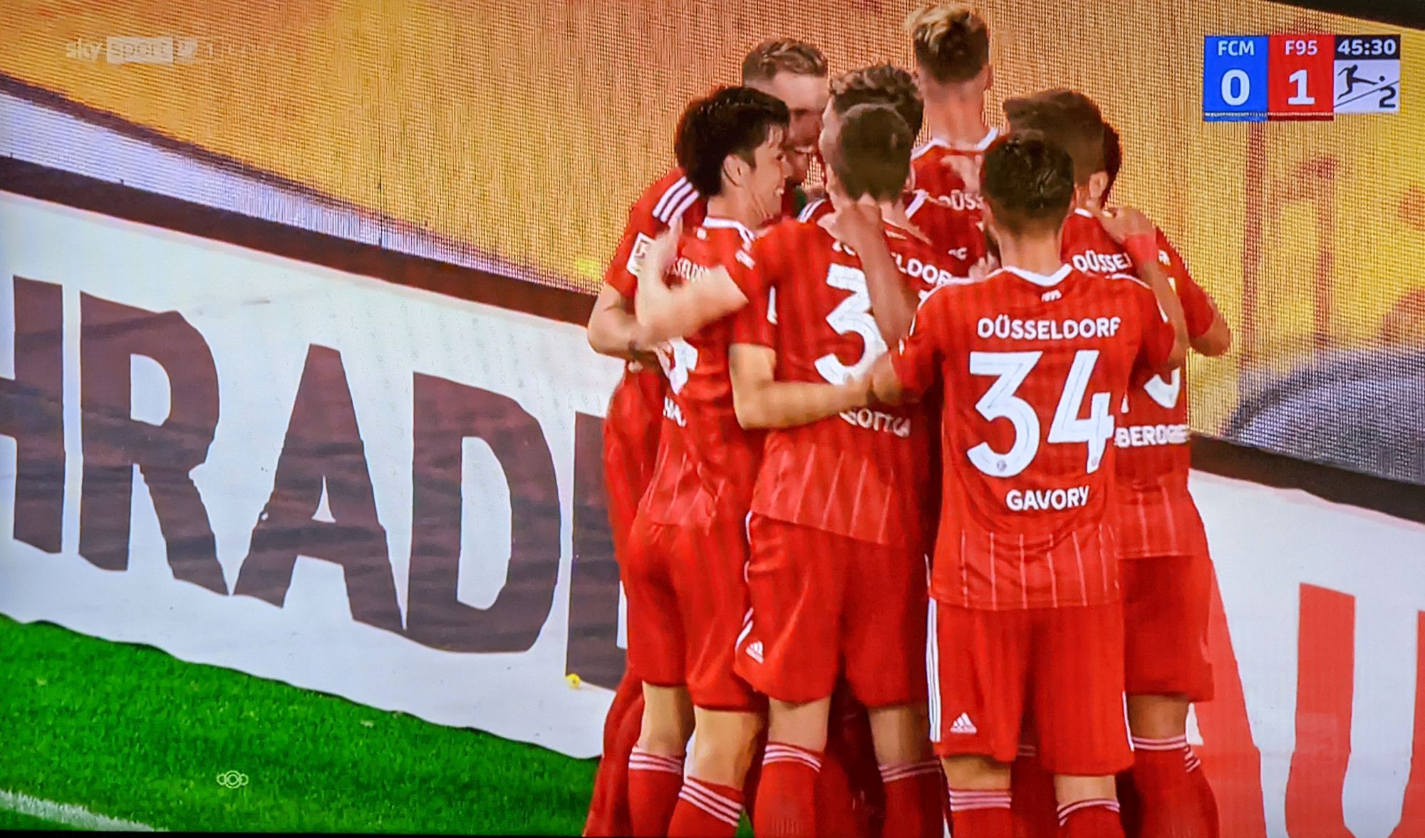 Die Statistik wird sich auch zum Ende hin nur wenig, aber entscheidend ändern, denn bei Abpfiff hat F95 besonders bei den Zweikämpfen und – wie erwähnt – bei den Torschüssen massiv aufgeholt. Dass ein Team mit 62 Prozent Ballbesitz nicht automatisch gewinnt, ist inzwischen ein alter Hut, und Ballbesitzfußball ist kein Erfolgsrezept mehr, sondern nur noch ein taktisches Element. Viel wichtiger sind Balleroberungen, und die entstehen durch engagiertes Anlaufen des ballführenden Spielers, gern auch mal mit zwei oder gar drei Spielern. Das hat in den zweiten 45 Minuten ziemlich gut funktioniert. Auch wichtig, und das erfasst keine Statistik so richtig, sind die sogenannten „zweiten Bälle“, also die Bälle, die nach einem Zweikampf frei werden.