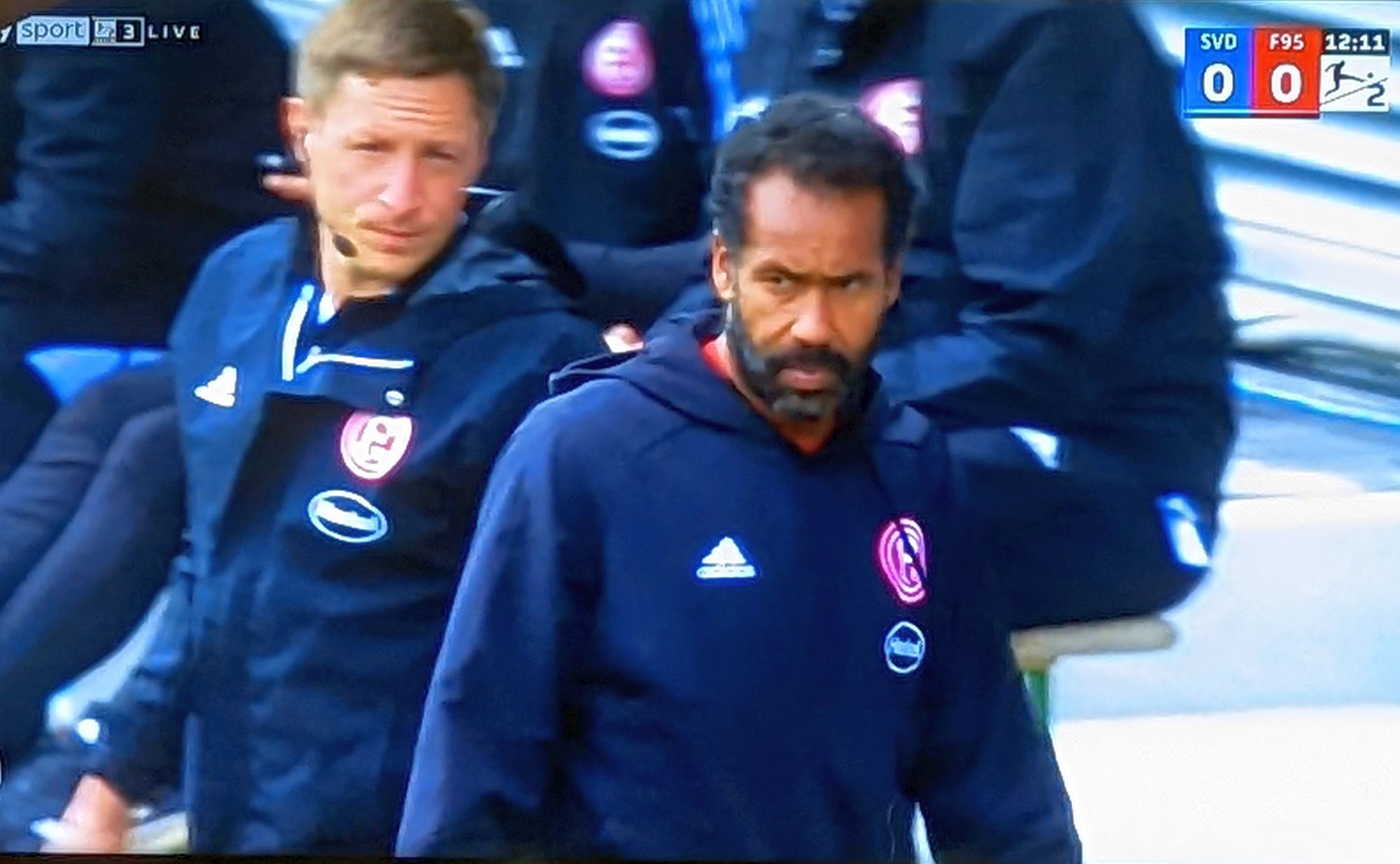 SVD vs F95: Trainer Thioune leistet erste Hilfe (Screenshot Sky)
