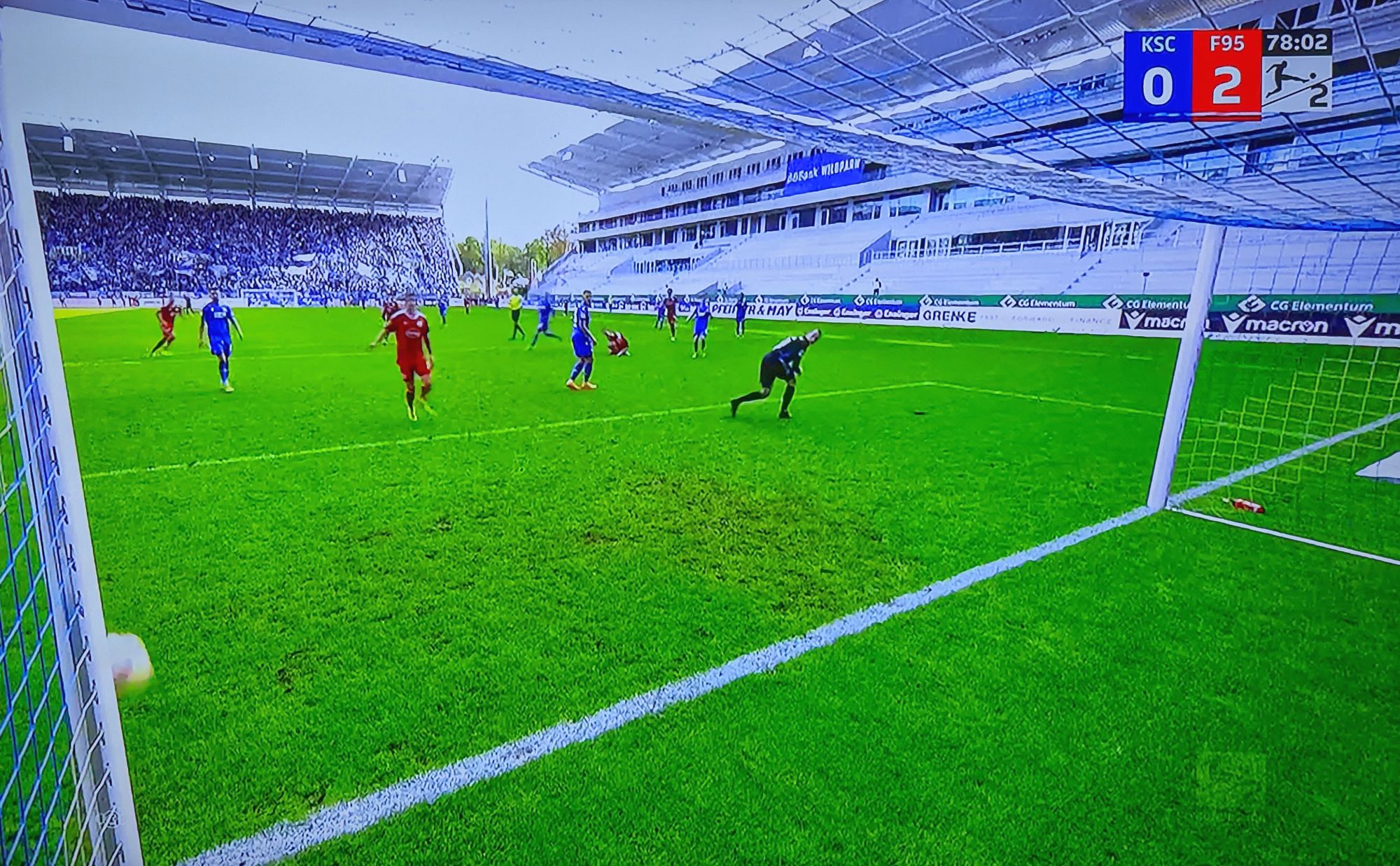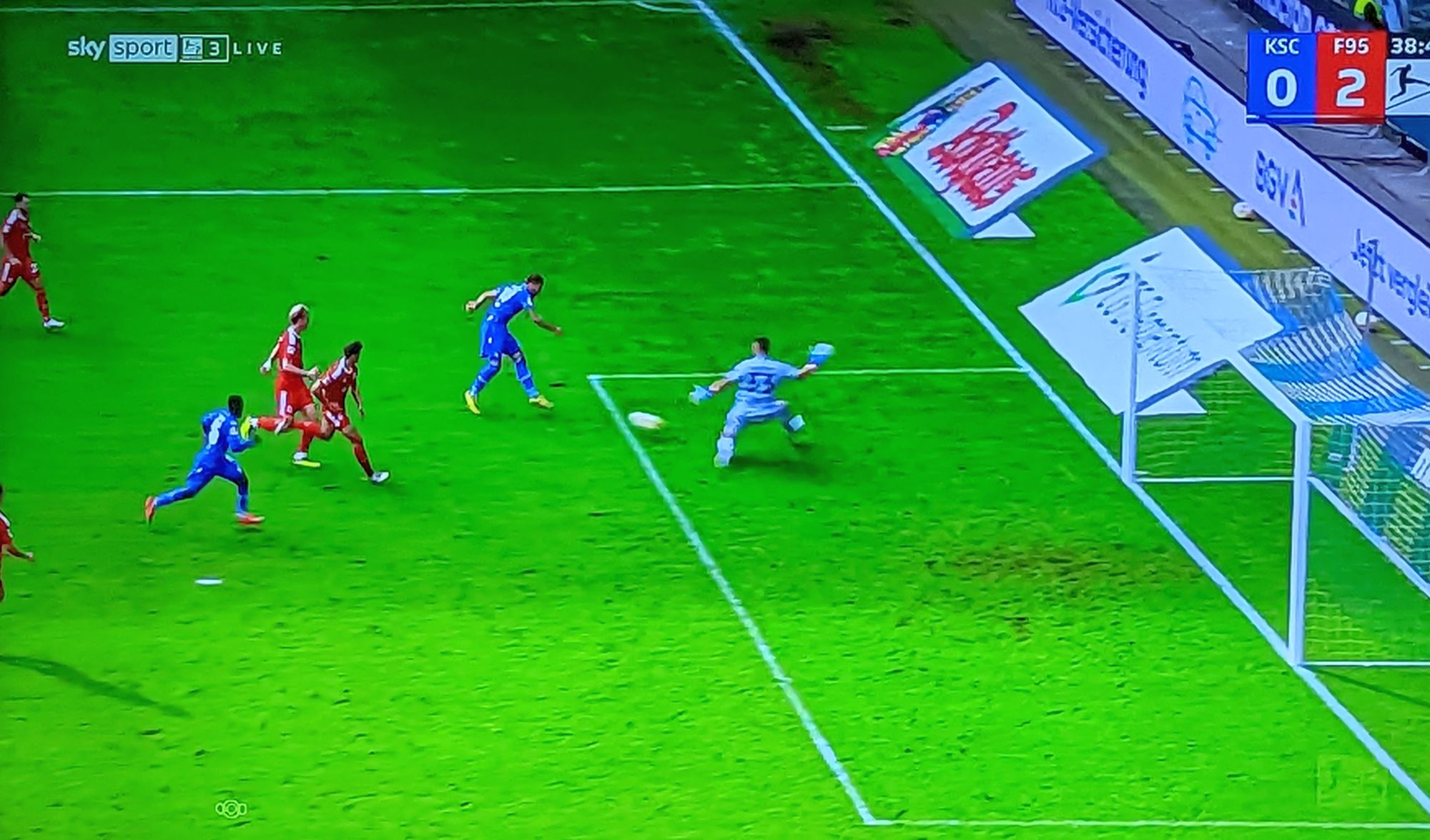 Allen voran übrigens Dawid Kownacki, dem zwar keine Bude gelang, der aber die prächtig Vorlage zum 1:0 lieferte. Schussglück hat er momentan nicht, gegen seine versägten direkten Freistöße würde vielleicht mal ein gezielte Schusstraining helfen. Genau wie er war aber auch Emma Iyoha bei jeder Offensivaktion ein für die KSCler kaum fassbarer Unruheherd. Niemand bekam die beiden je in den Griff, der Schlüssel zur Niederlage der Badener war aber ganz klar die Tatsache, dass sie Michal Karbownik viel zu große Freiheiten ließen; kann gut sein, dass sie dessen Fähigkeiten bei den Videoanalysen einfach übersehen hatten.
