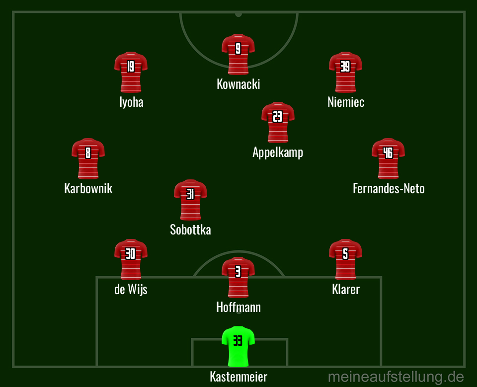 Denken wir aber doch einmal um die Ecke in Richtung Experiment. Und zwar ein stürmisches mit einer 3-4-3-Konstellation. Sowie Elo Fernandes Neto und Jona Niemiec als Starter. Da hätten wir dann einen Sturm mit Dawid Kownacki, Emma Iyoha und dem guten Jona – Wow! Hinten würden in dieser Variante Käpt’n Hoffmann, Chris Klarer und Jordy de Wijs die Defensivkette bilden. Das Mittelfeld wäre extrem variantenreich und mit Cello Sobottka, Elo Neto, Micky Karbownik und Shinta Appelkamp besetzt – Doppel-Wow!