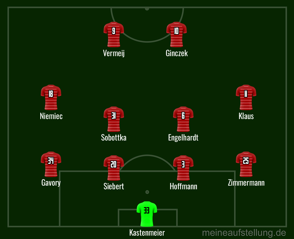 Wagen die Coaches eine Offensive mit Doppelspitze, also mit Daniel Ginczek neben Vermeij, kriegen wir ein 4-4-2, möglicherweise ohne Shinta Appelkamp: