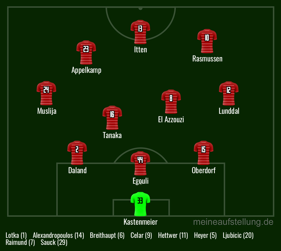 Der Ergebene würde Valle Lunddal rechts auf die Außenposition stellen und nicht Luca Raimund, der in K’lautern mit dem Job überfordert war. Auf der anderen Seite führt kein Weg an Florent Muslija vorbei, der seine Aufgabe sehr offensiv interpretiert, was der Offensive guttut, aber die Defensive schwächt – was mit Daland auf diesem Flügel hinten nicht ohne Risiko ist.